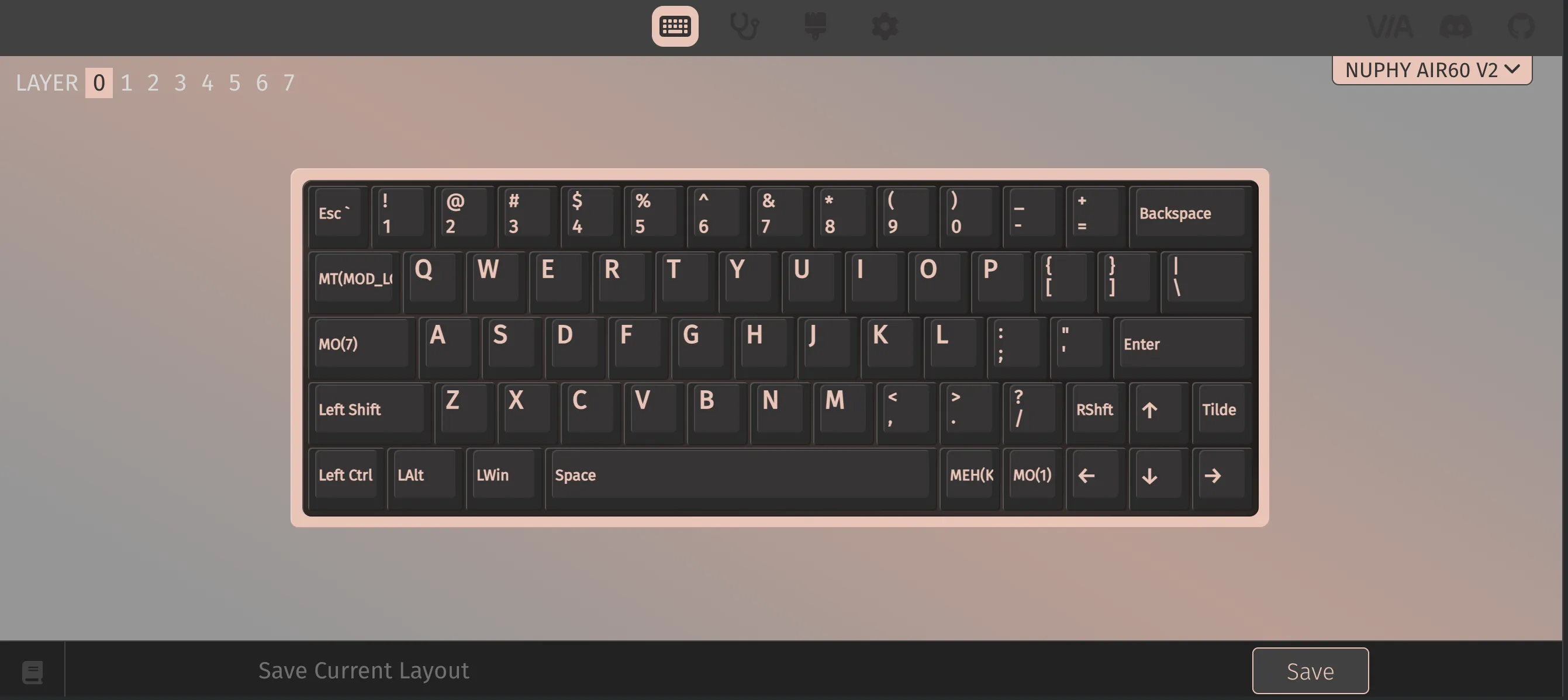 Note: The NuPhy has a Win/Mac toggle, which toggles default layers: 0,1 for Mac and 3,4 for Windows. Initially, this was a bit confusing because I didn't think my key mappings were being changed; it turned out I was editing the wrong layer.