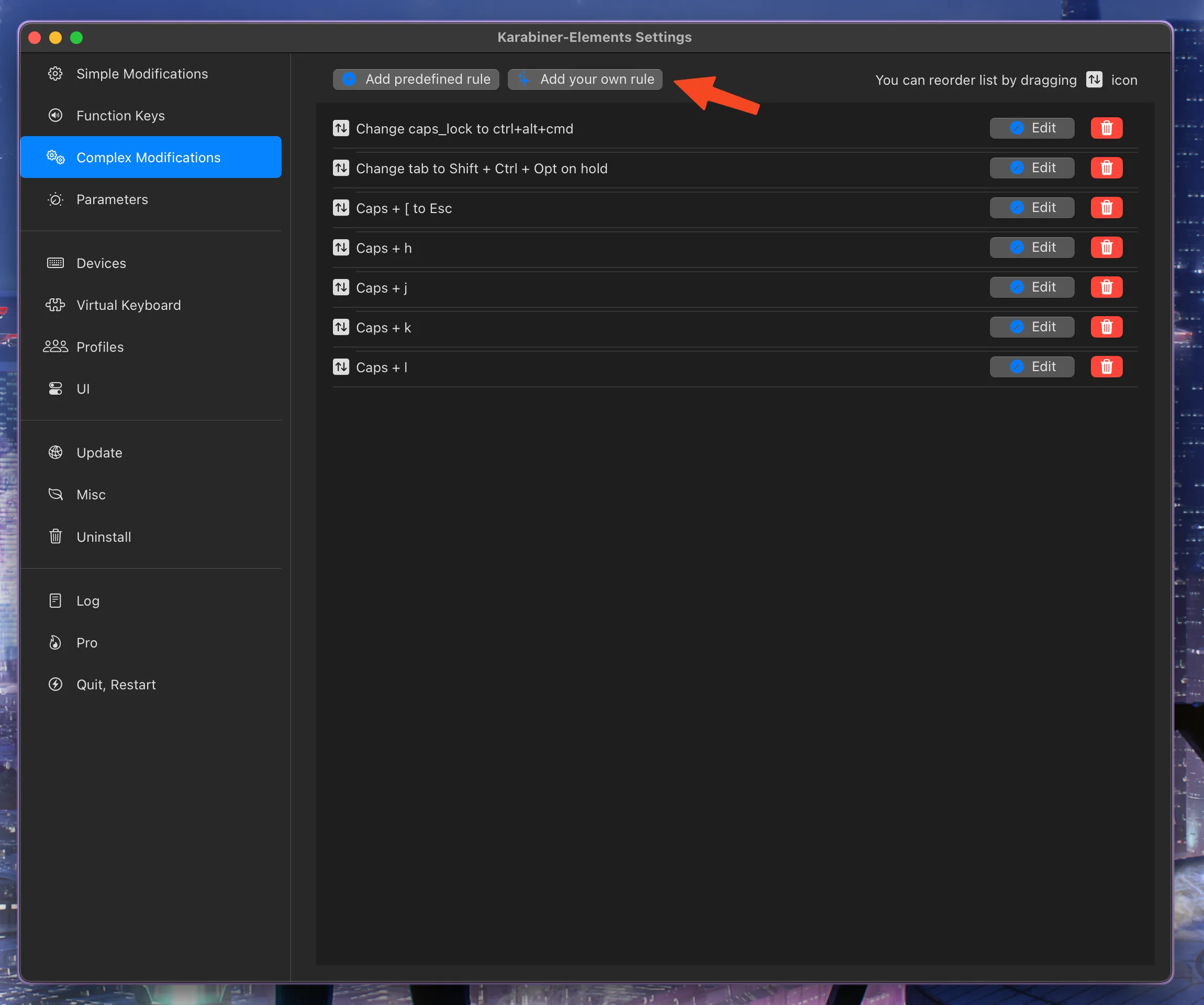 Now let's configure the same in Karabiner, which I still use for the built-in MacBook keyboard.
